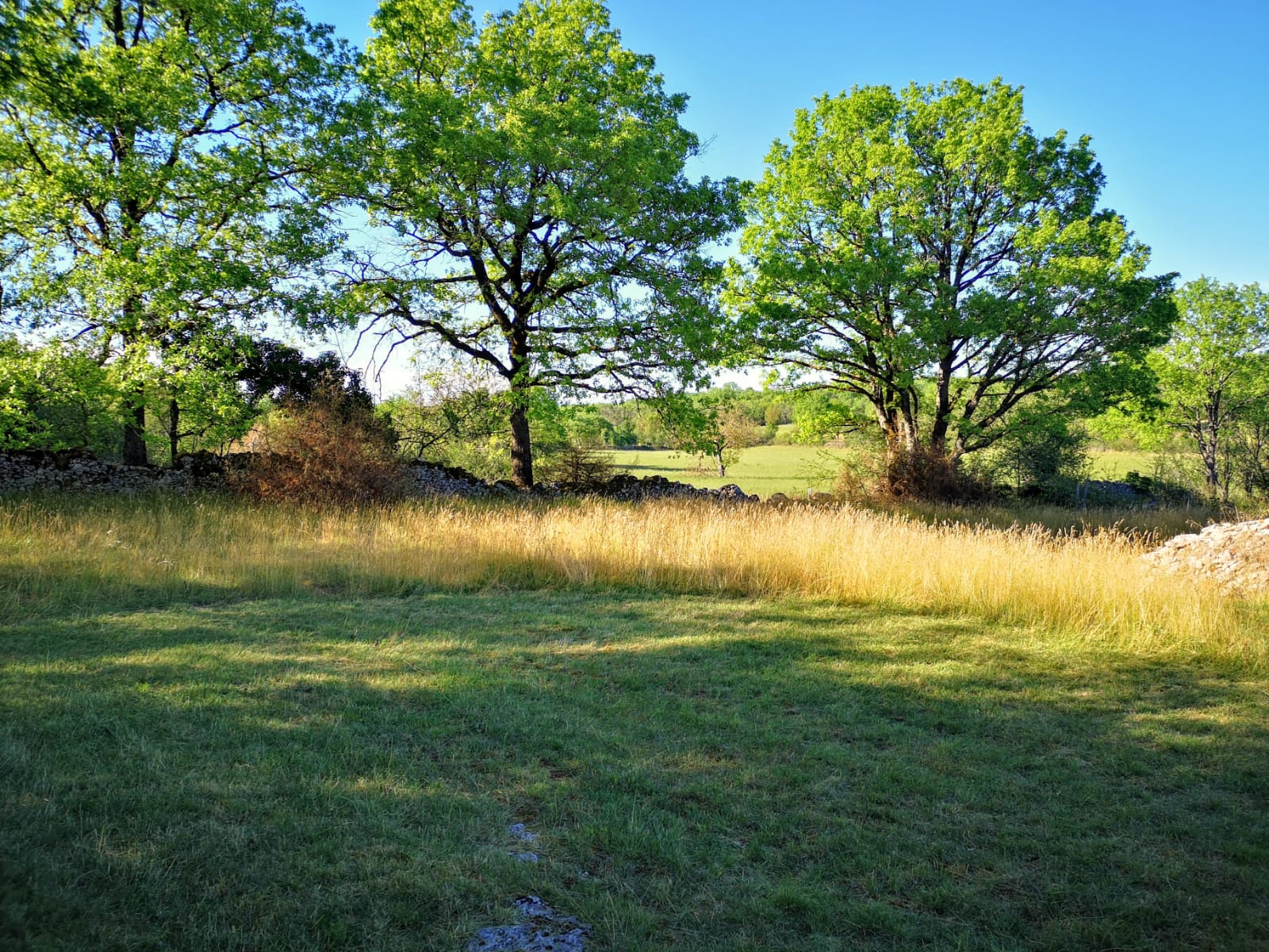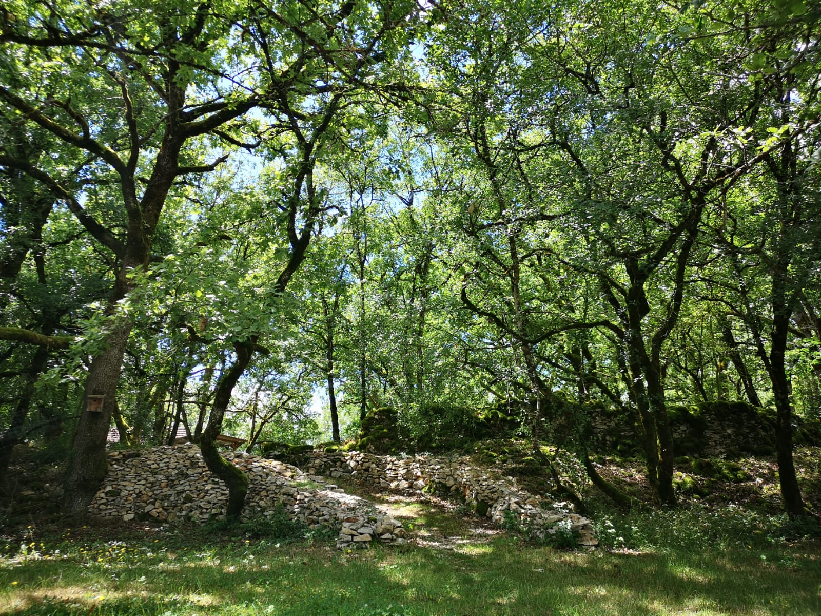 Profitant d'une vue dégagée sur le verger et la campagne environnante avec ses chênes et ses murets en pierre sèches.